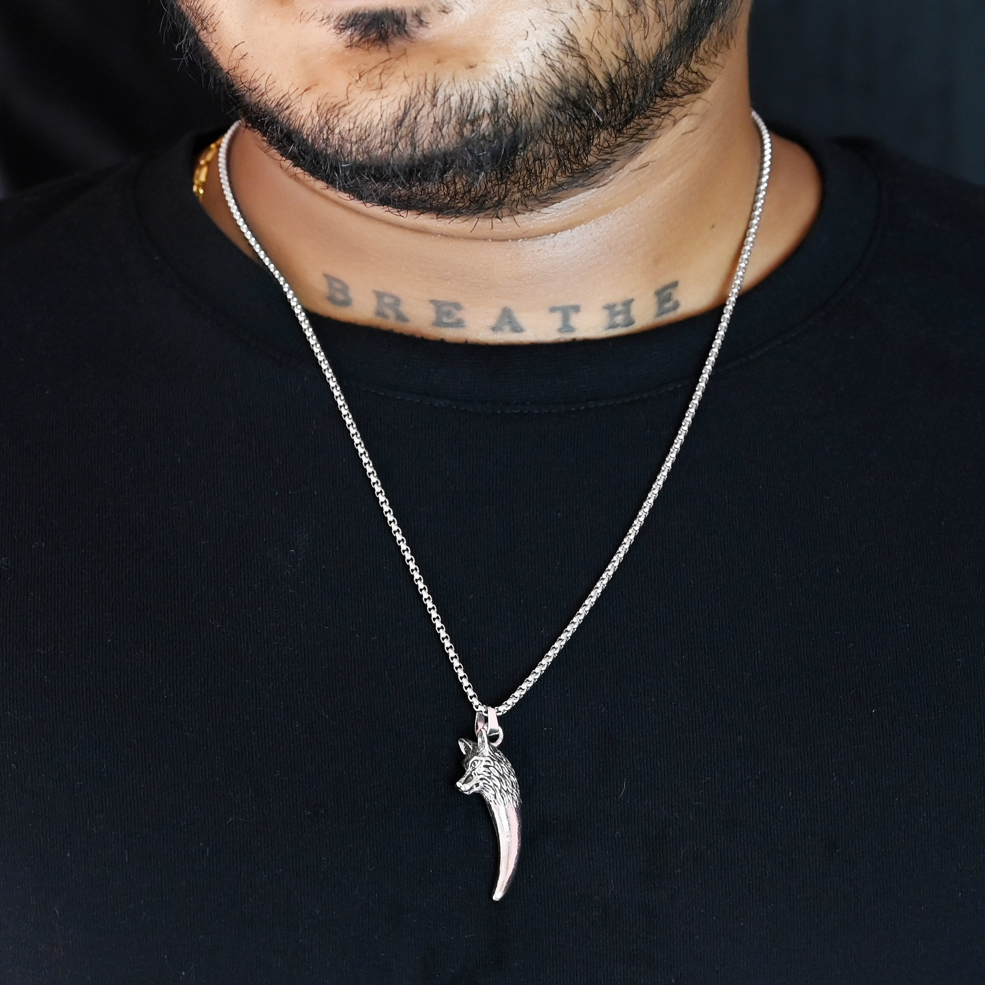 Be the first to review “Bold Silver Wolf Head Pendant Necklace for Men”