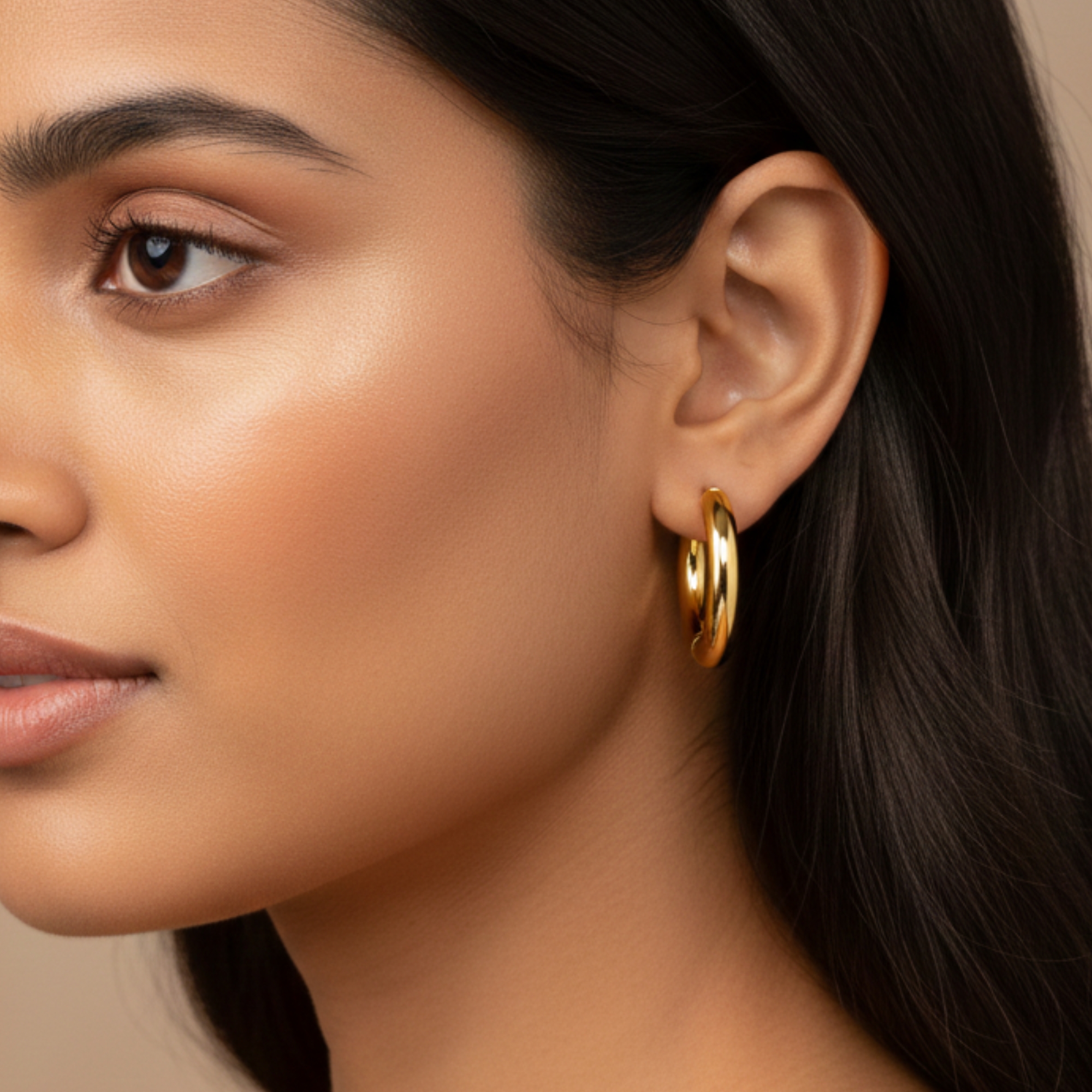 Minimal Huggie Design: Compact round hoops designed to sit close to the ear for a neat, modern appearance.