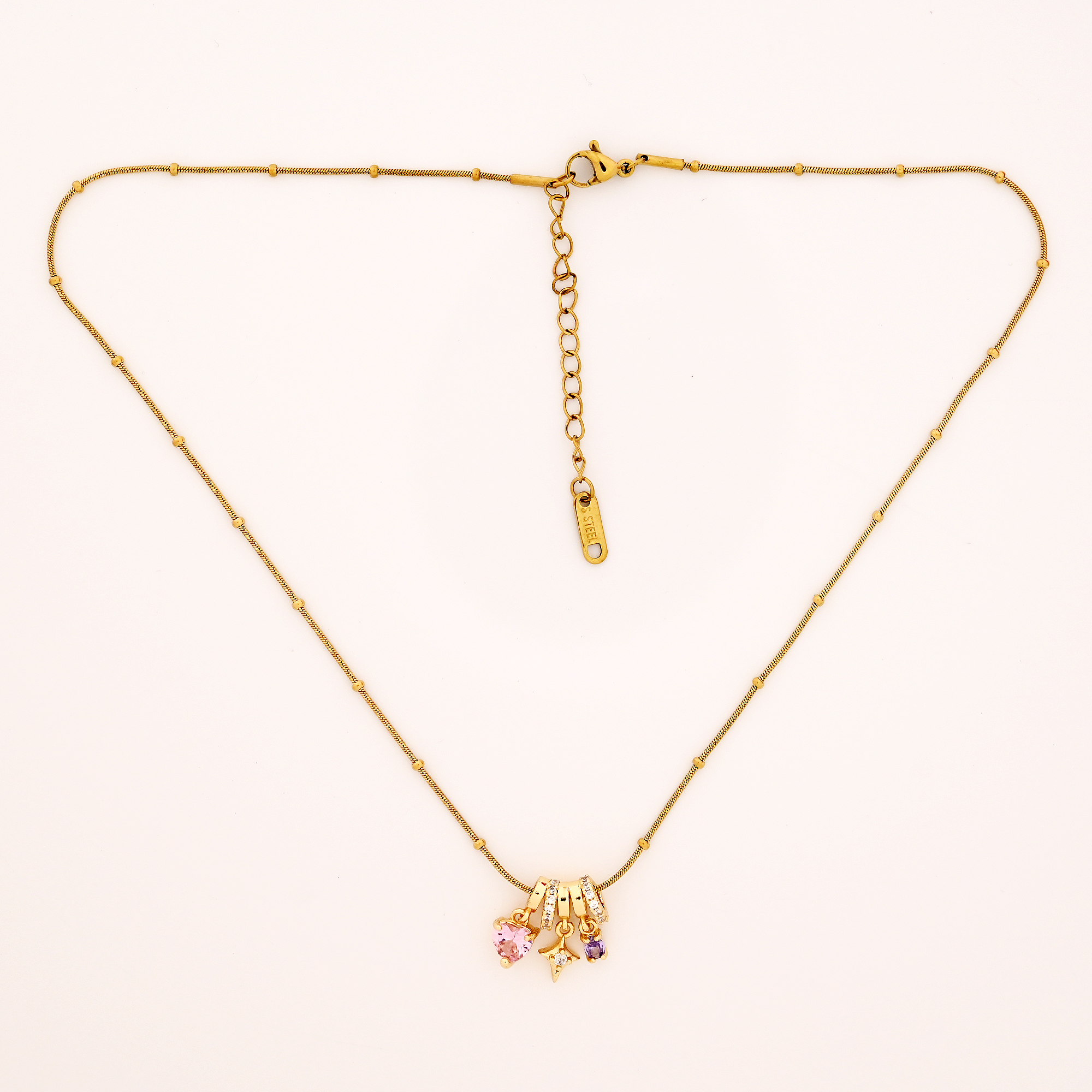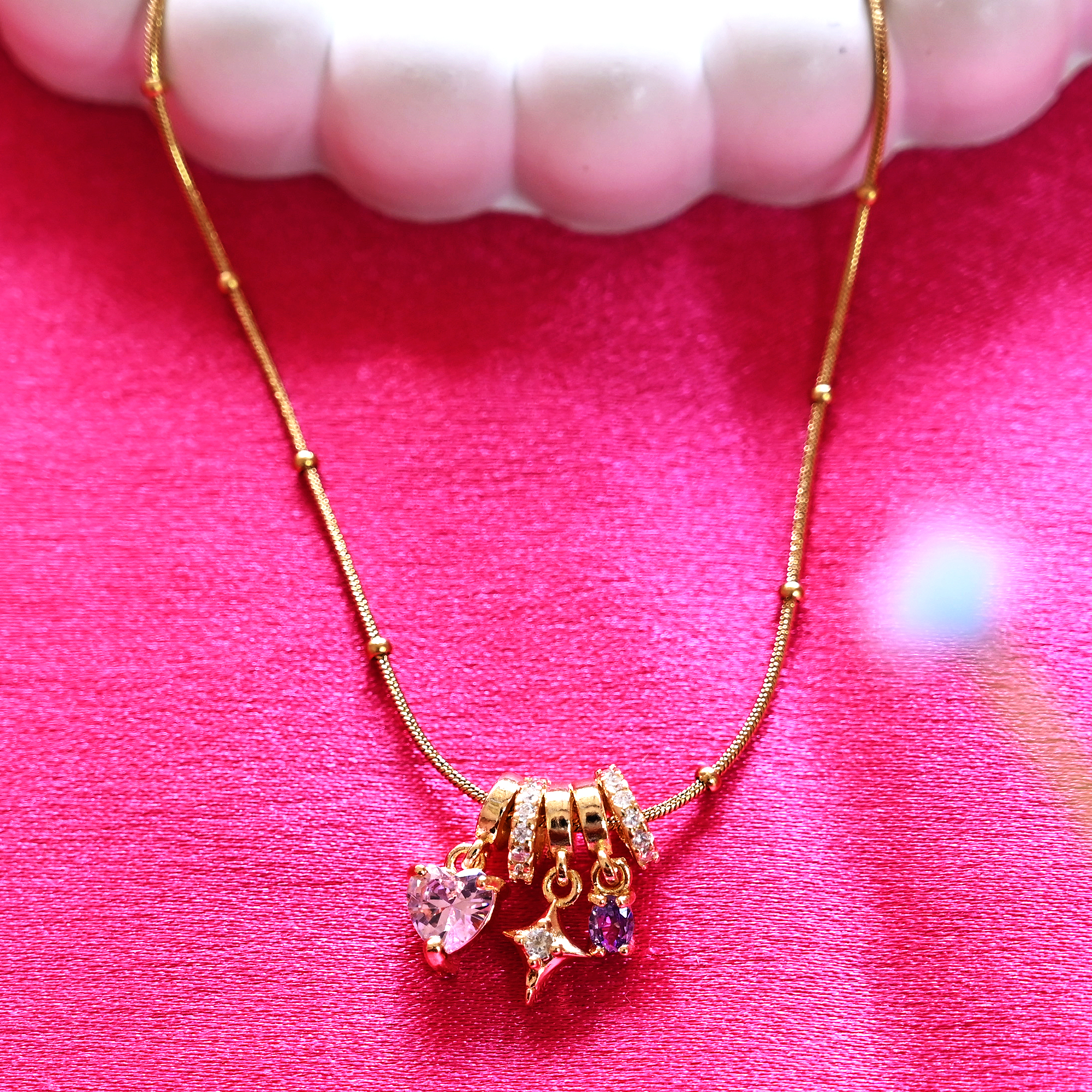 1. Charming Design – Features a heart and star charm with sparkling pink and white crystals that add an instant touch of grace and sparkle to your look.
