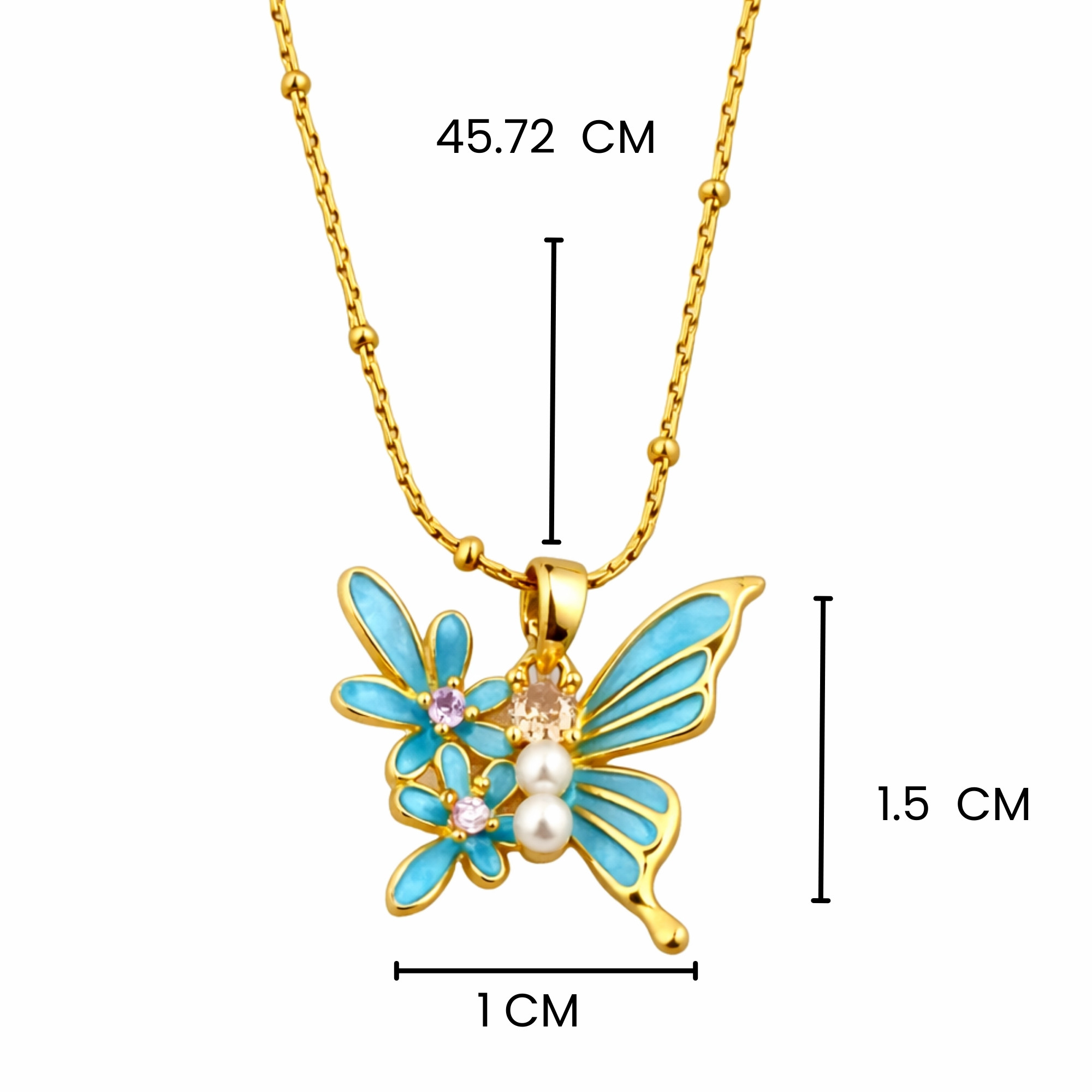 Be the first to review “Elegant Butterfly Pendant with Blue Enamel & Pearl Design Chain for Women”