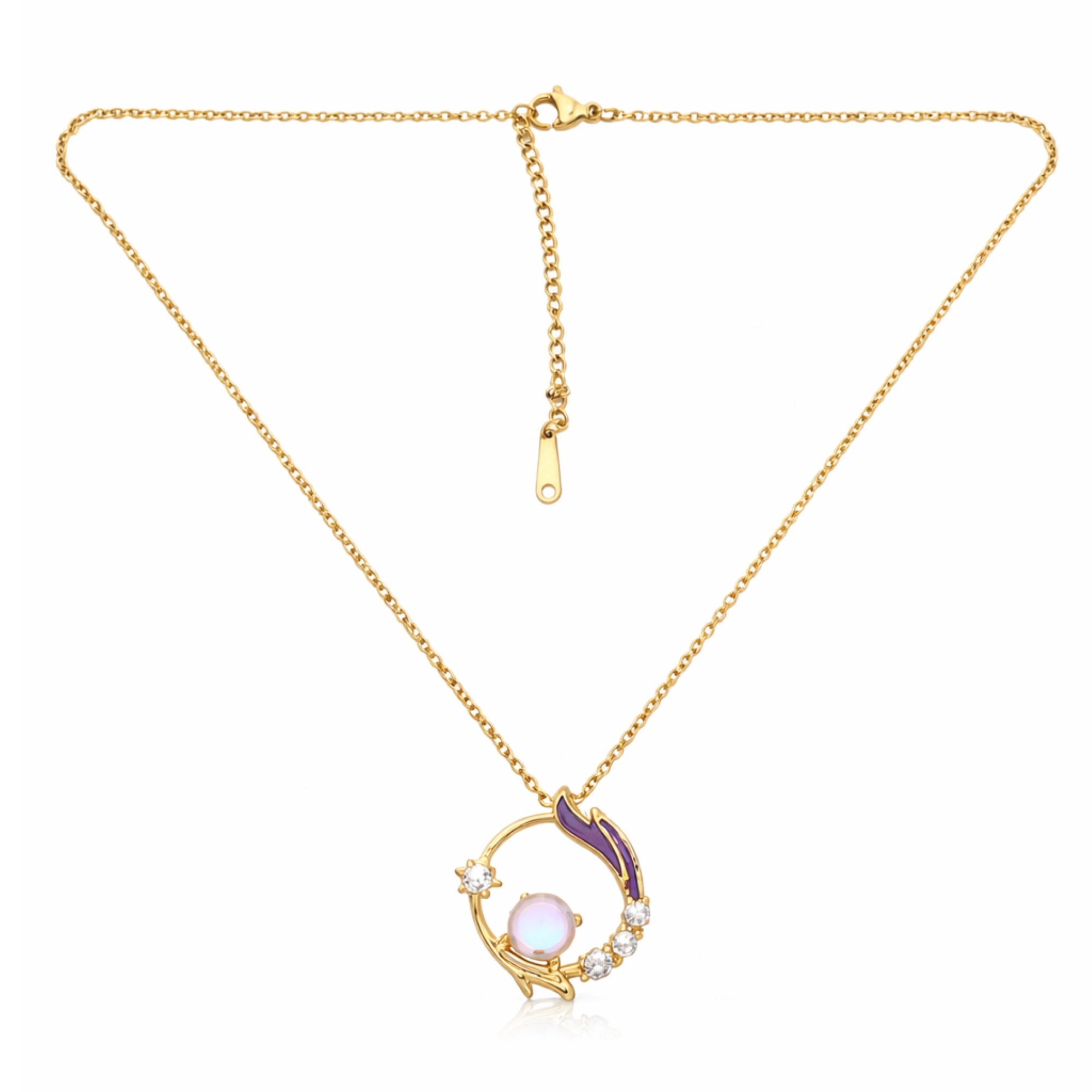 1. Elegant & Artistic Design – Beautifully crafted round pendant featuring a glossy central stone, delicate crystals, and a touch of purple enamel for a unique, graceful look.