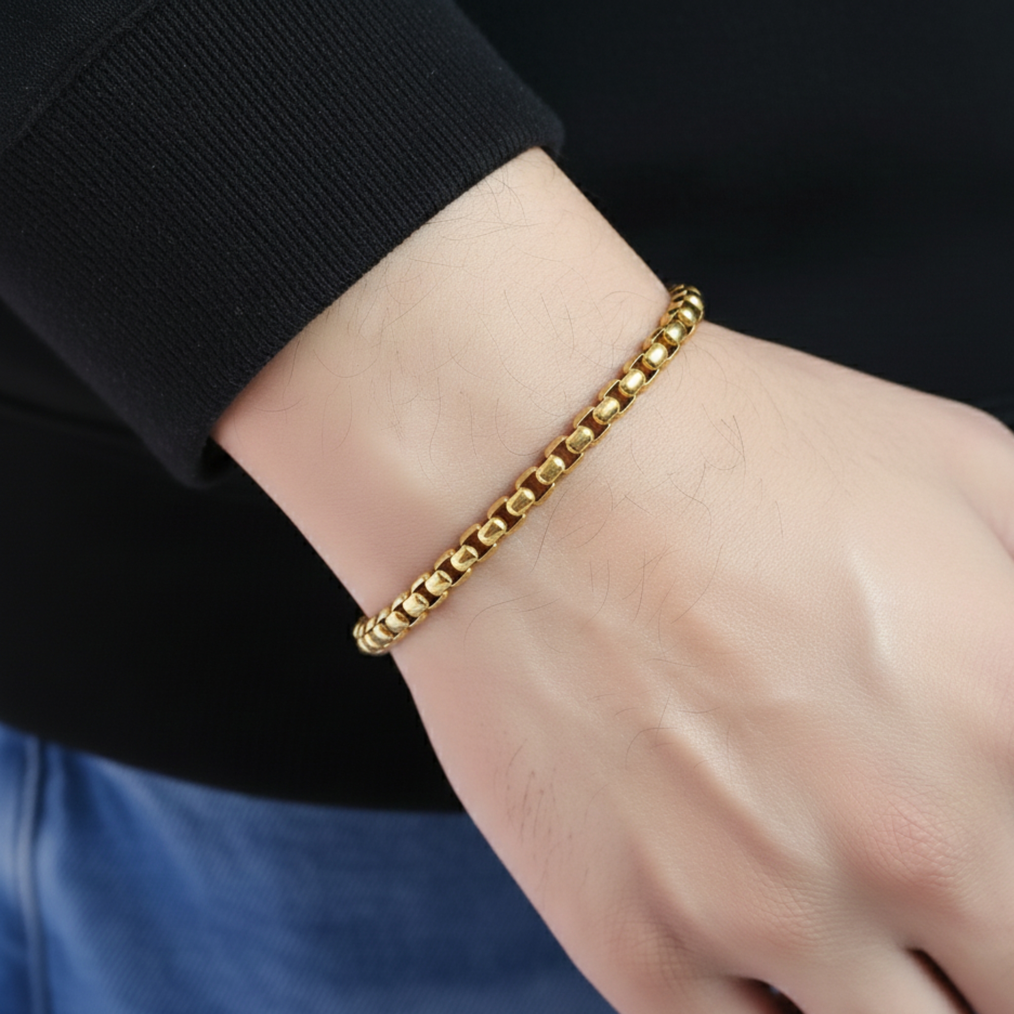 Elevate your everyday style with the AuraSpark Interlink Gold Box Chain Bracelet. Designed specifically for the modern man, this bracelet combines rugged durability with a high-polish luxury finish. Crafted from premium-grade materials, the distinctive rounded box links are meticulously interlocked to ensure a smooth, comfortable fit on the wrist while providing a bold, masculine aesthetic.