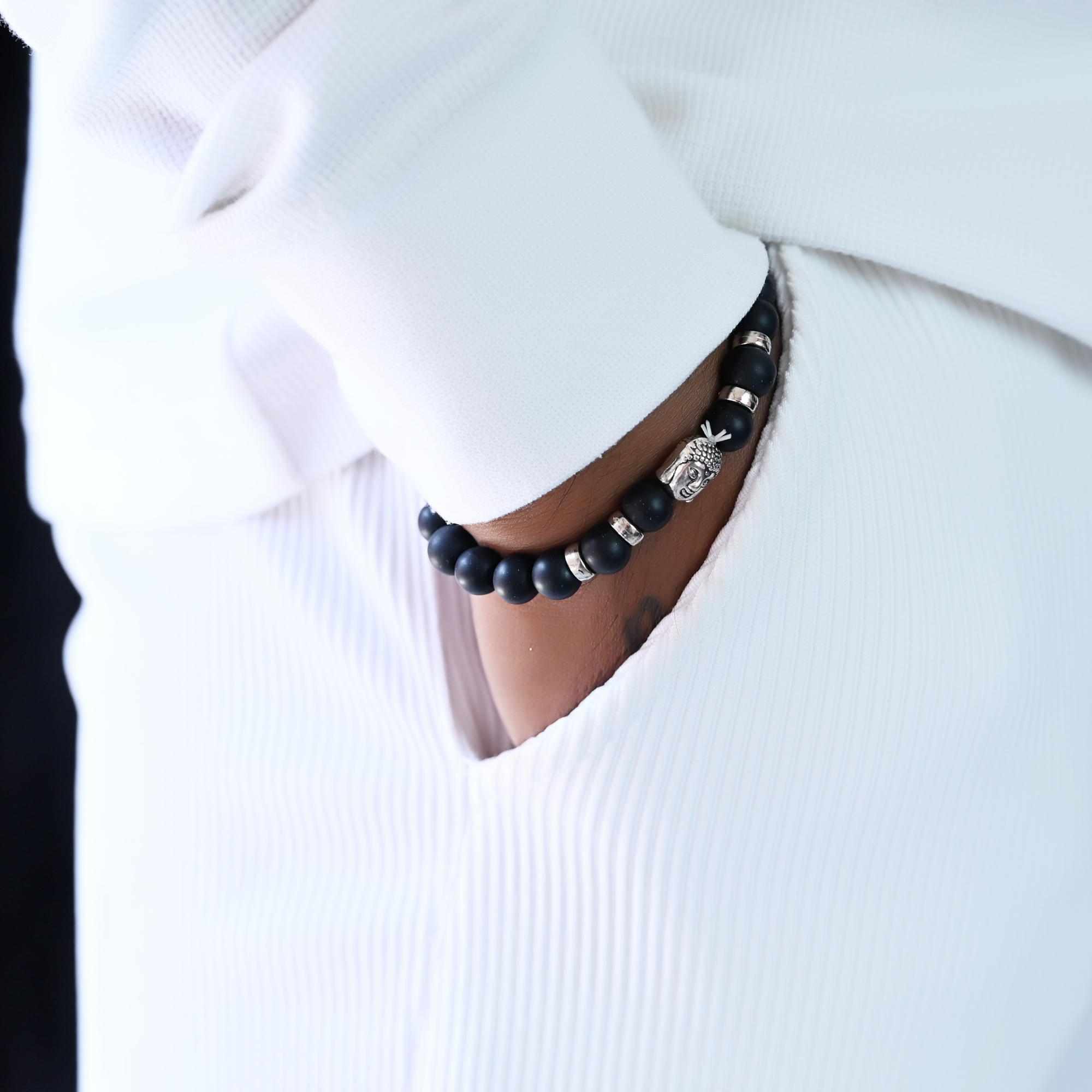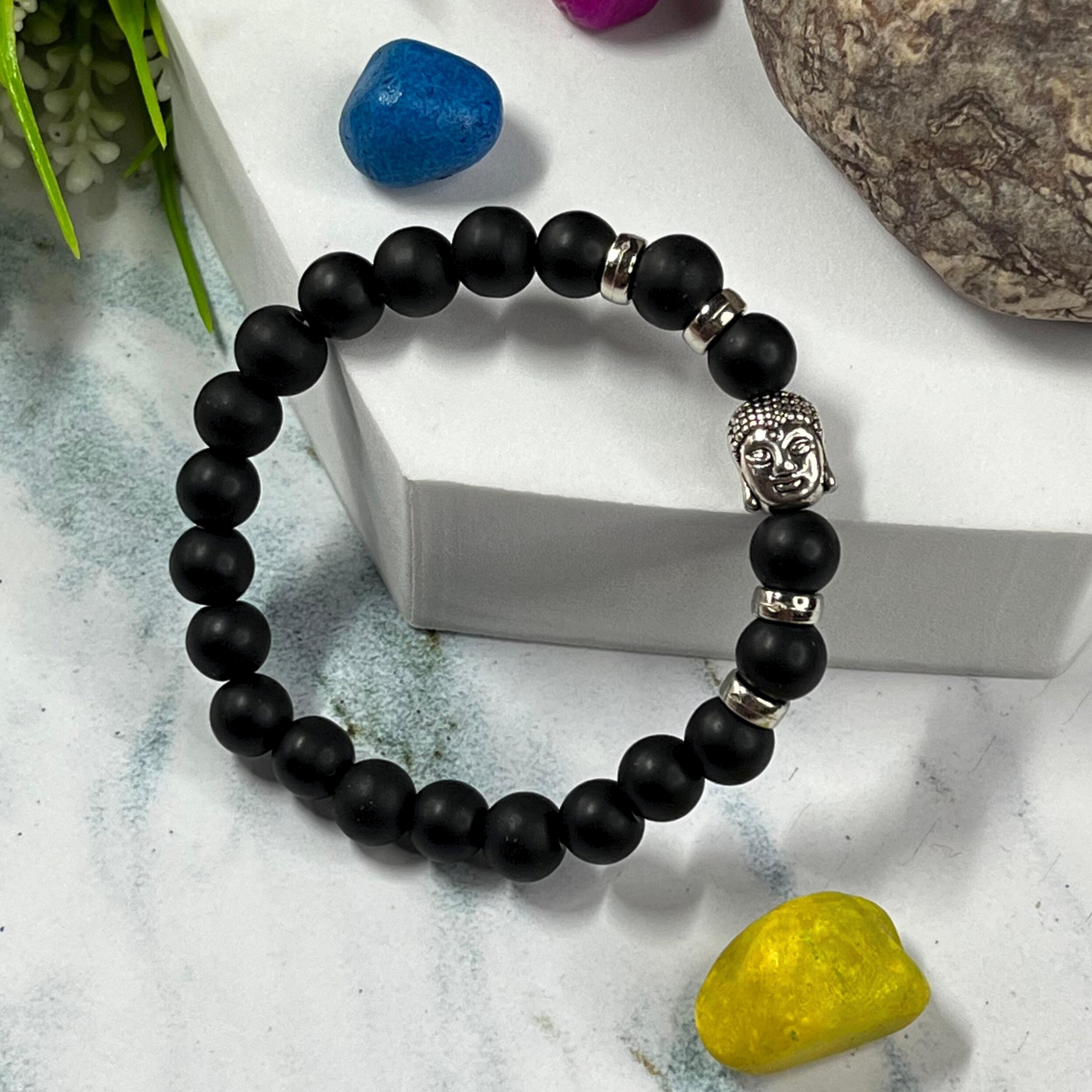 Detailed Buddha Charm: A centerpiece silver-toned Buddha head symbolizes wisdom, compassion, and tranquility, serving as a focal point for mindfulness.