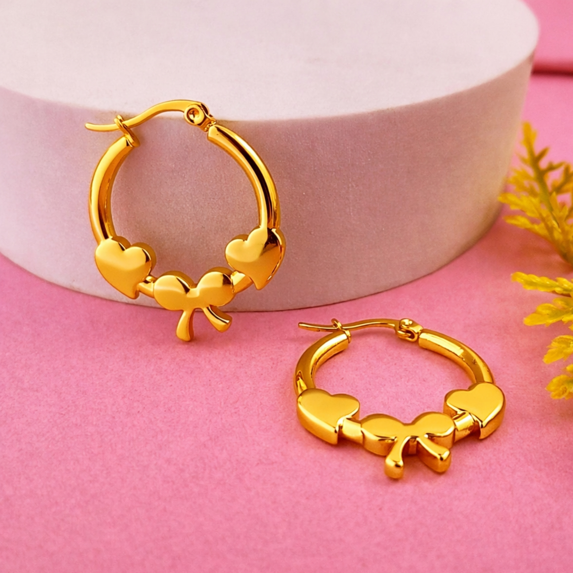 Gold Plated Romantic Heart & Bow Hoop Earrings for Women