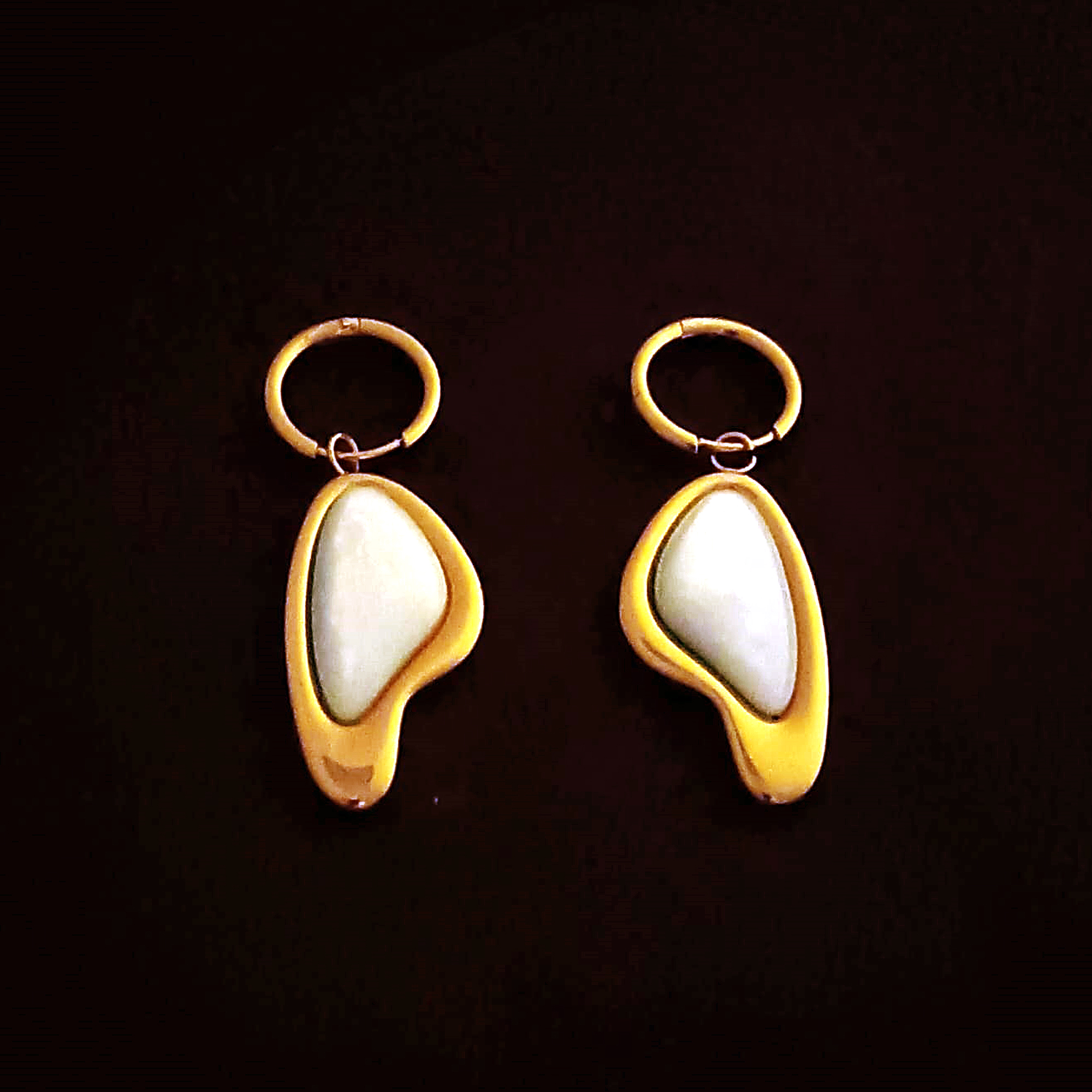 Elevate your jewelry collection with the AuraSpark Modern Pearl White Enamel Dangle Earrings. Designed for the woman who appreciates the intersection of classic elegance and contemporary art, these earrings feature a unique, asymmetrical “molten gold” frame that hugs a luminous pearl-white enamel inlay.