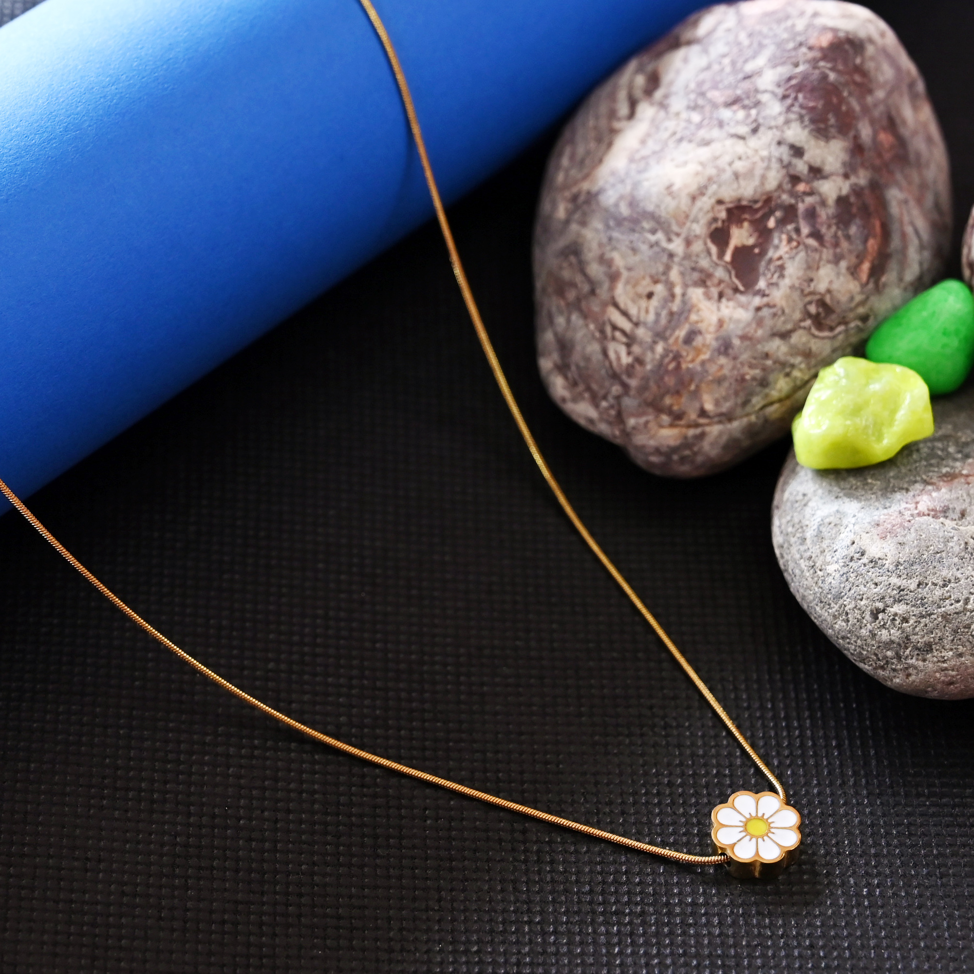 1. Charming Daisy Design – Features a beautiful white enamel daisy pendant symbolizing purity, happiness, and fresh beginnings, making it a must-have piece for every woman.