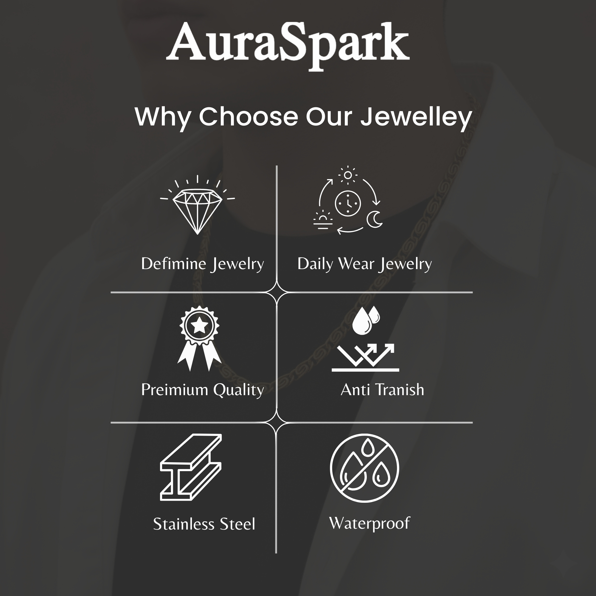 At AuraSpark, we specialize in high-quality anti-tarnish stainless steel jewelry designed for both men and women. Our pieces offer the luxurious look of gold and silver with the durability needed for everyday wear, all at an accessible price point.