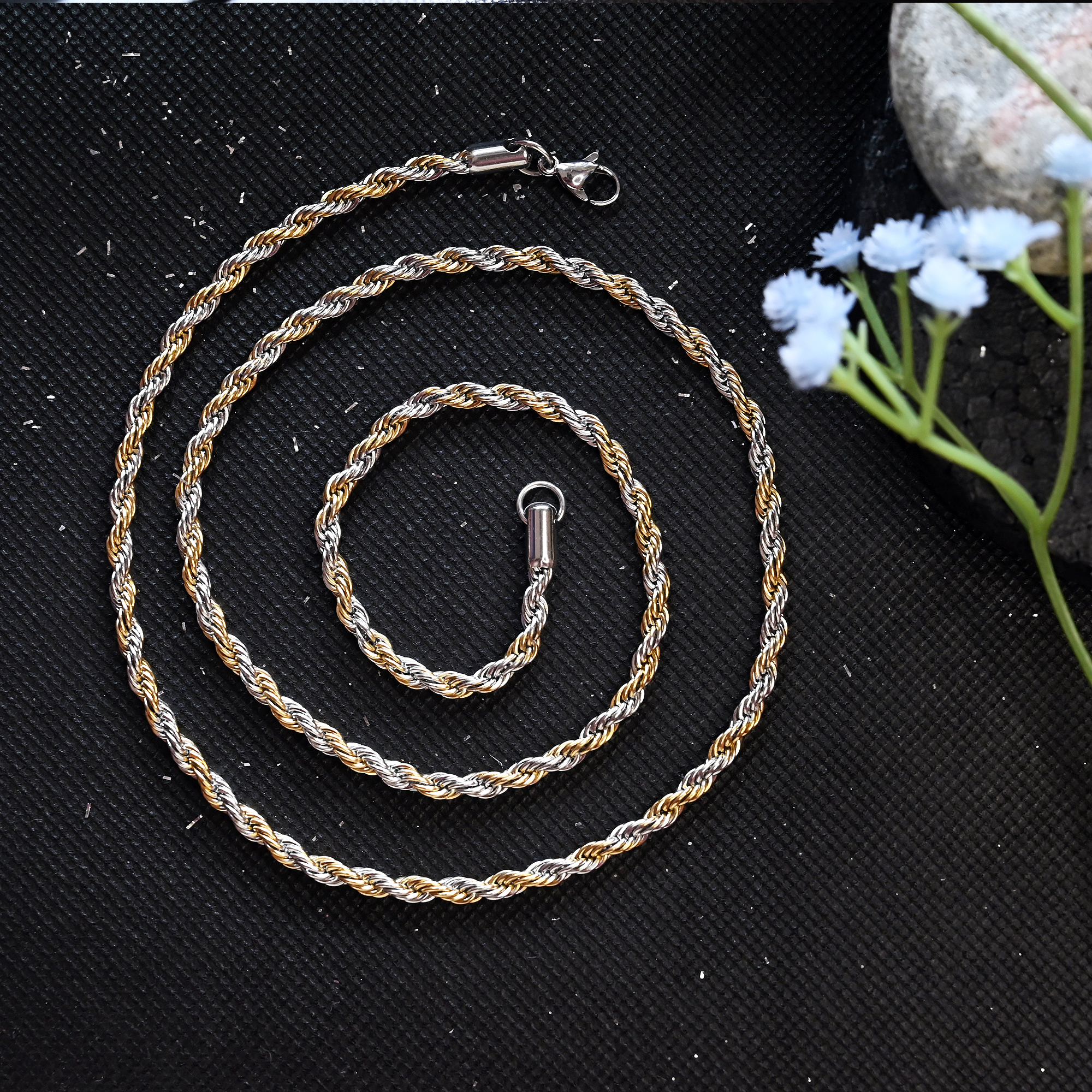 18K Gold Plating: With our 18K gold-plated rope chain, you may have a rich, beautiful yellow gold shine without having to worry about wearing an expensive piece.