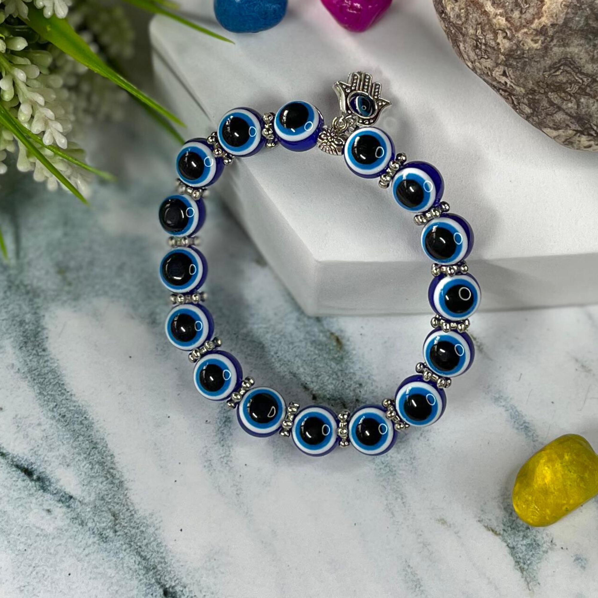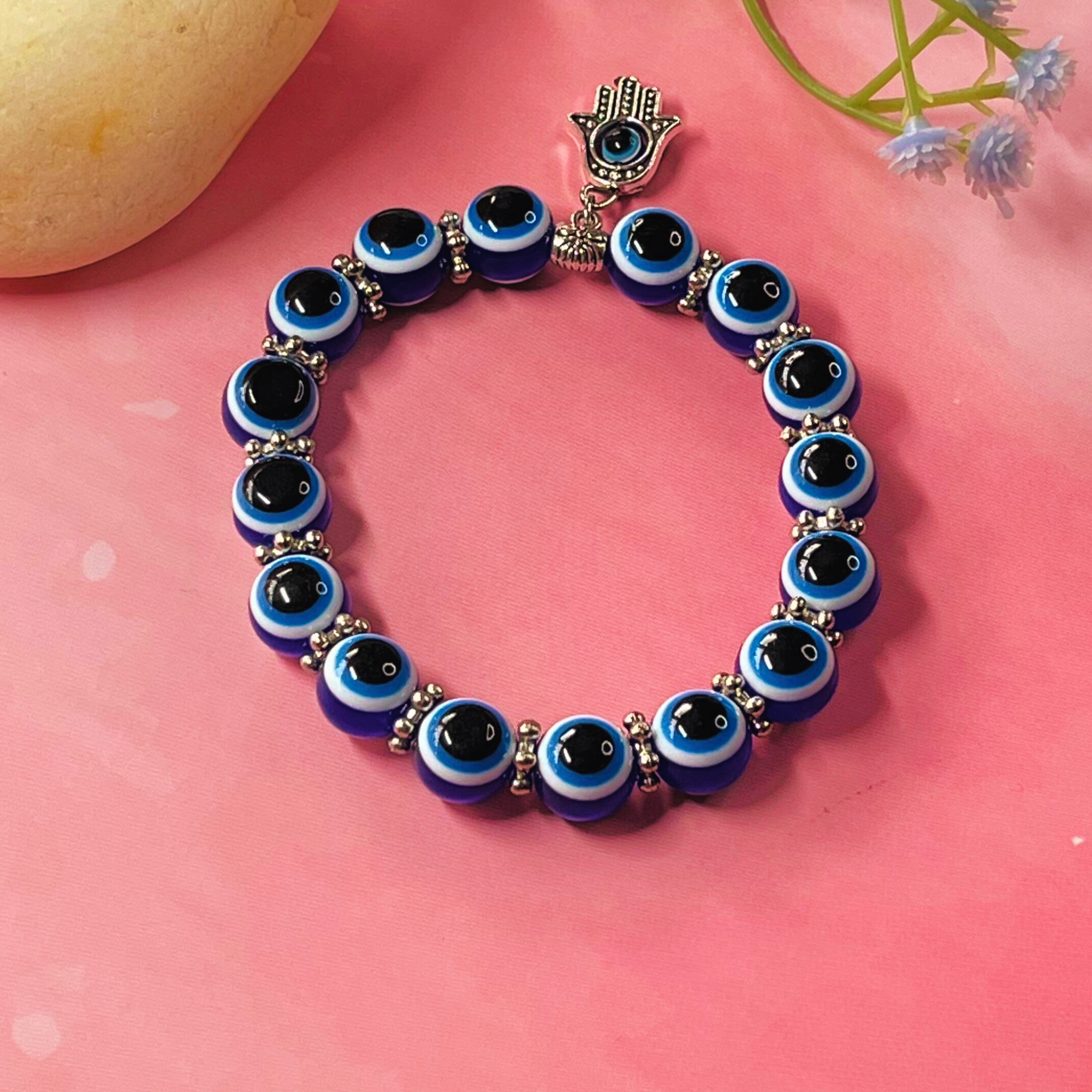 Protective Hamsa Hand & Evil Eye Nazar Bead Bracelet