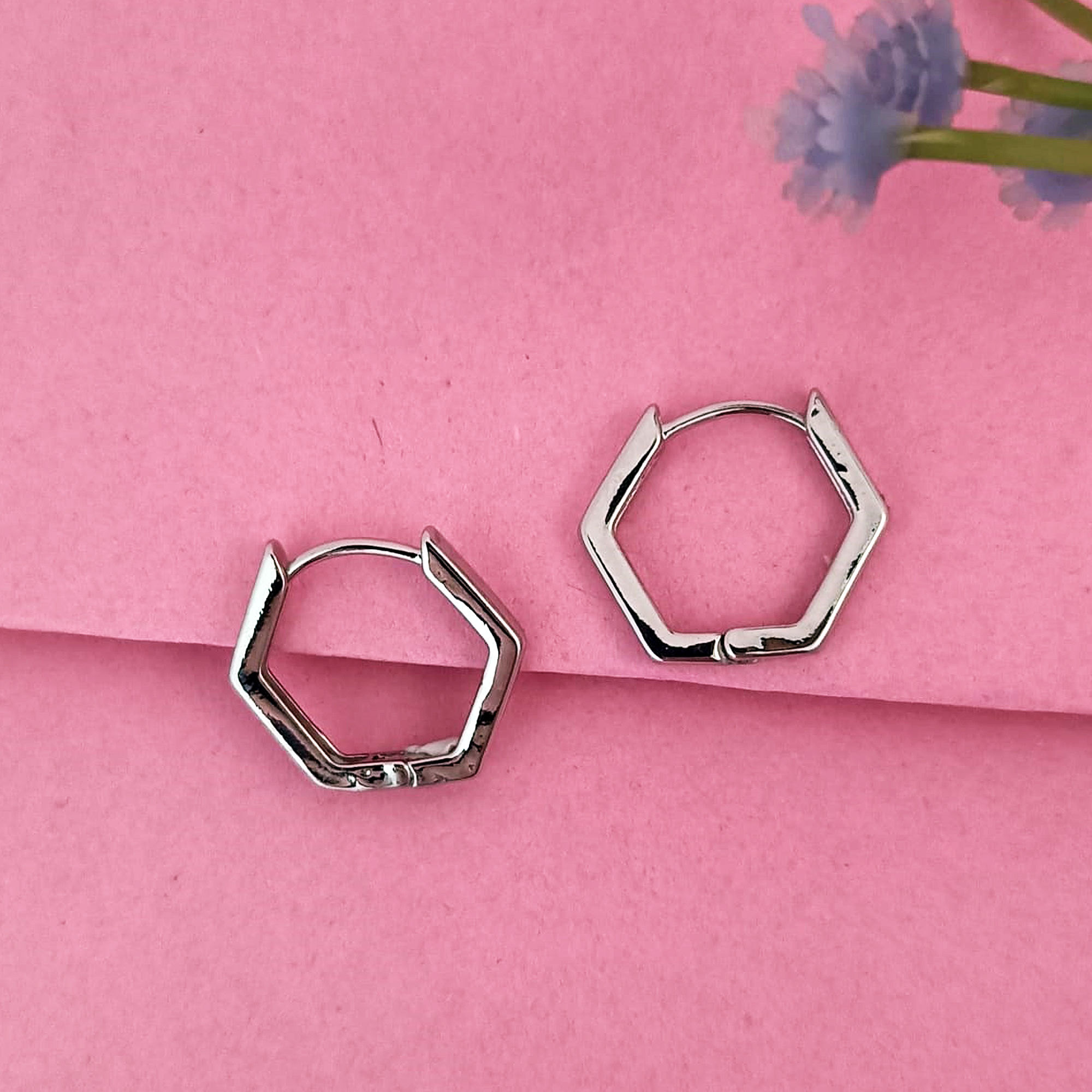 Modern Geometric Design: A unique six-sided hexagonal shape that provides a contemporary twist on the classic huggie hoop.