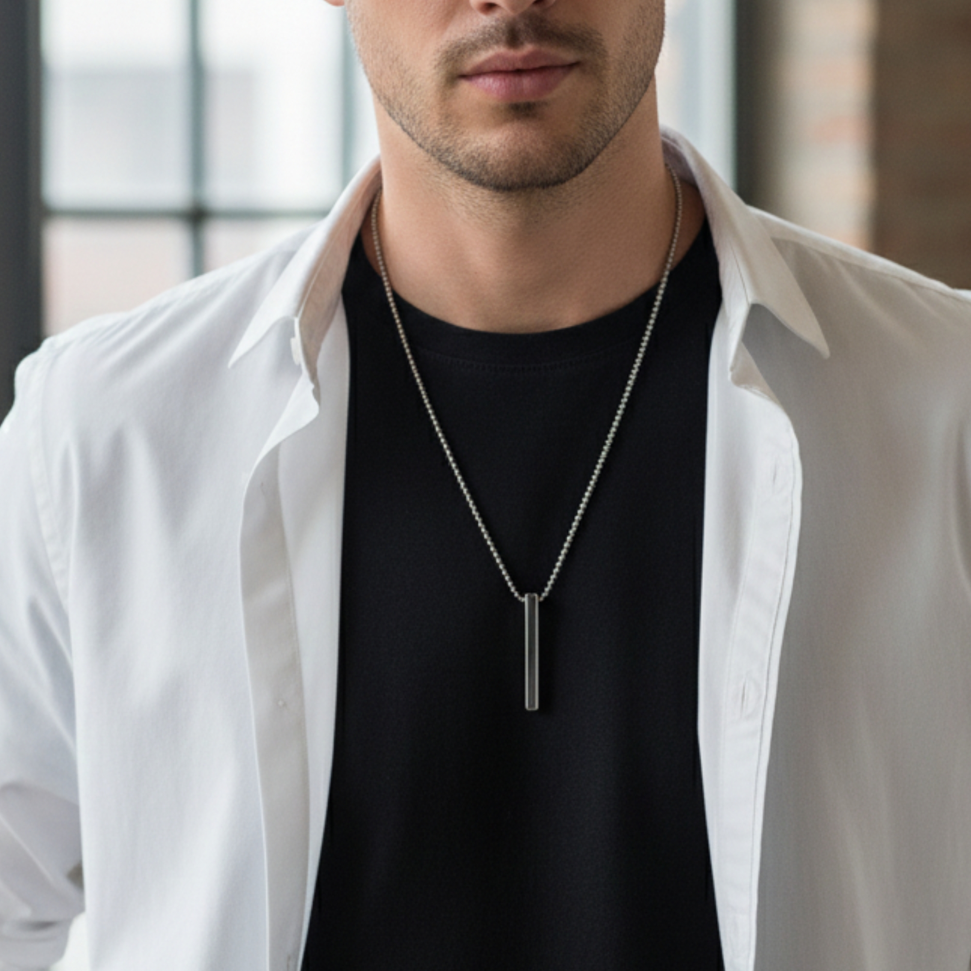 1. Minimalist Yet Powerful Design – The AuraSpark Bar Pendant Chain speaks to men who appreciate quiet strength is a must-have piece that adds class without shouting for attention.